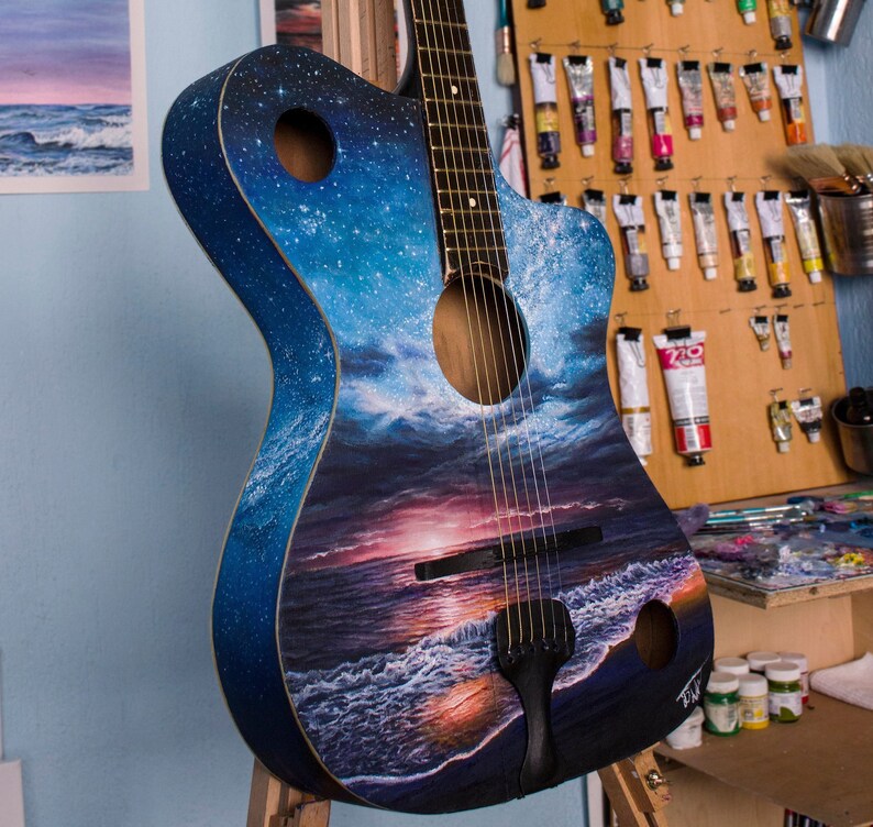 Original Hand Painted Guitar Dreamy Landscape Guitarists Etsy