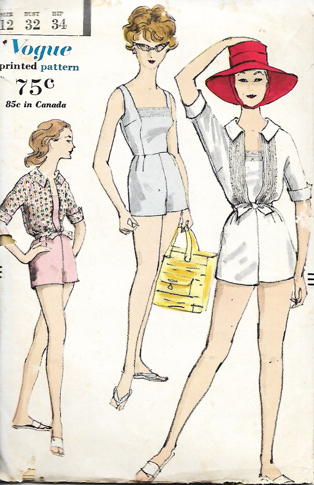 1950 S Vogue 9738 Misses Bathing Suit And Shirt Sewing Etsy