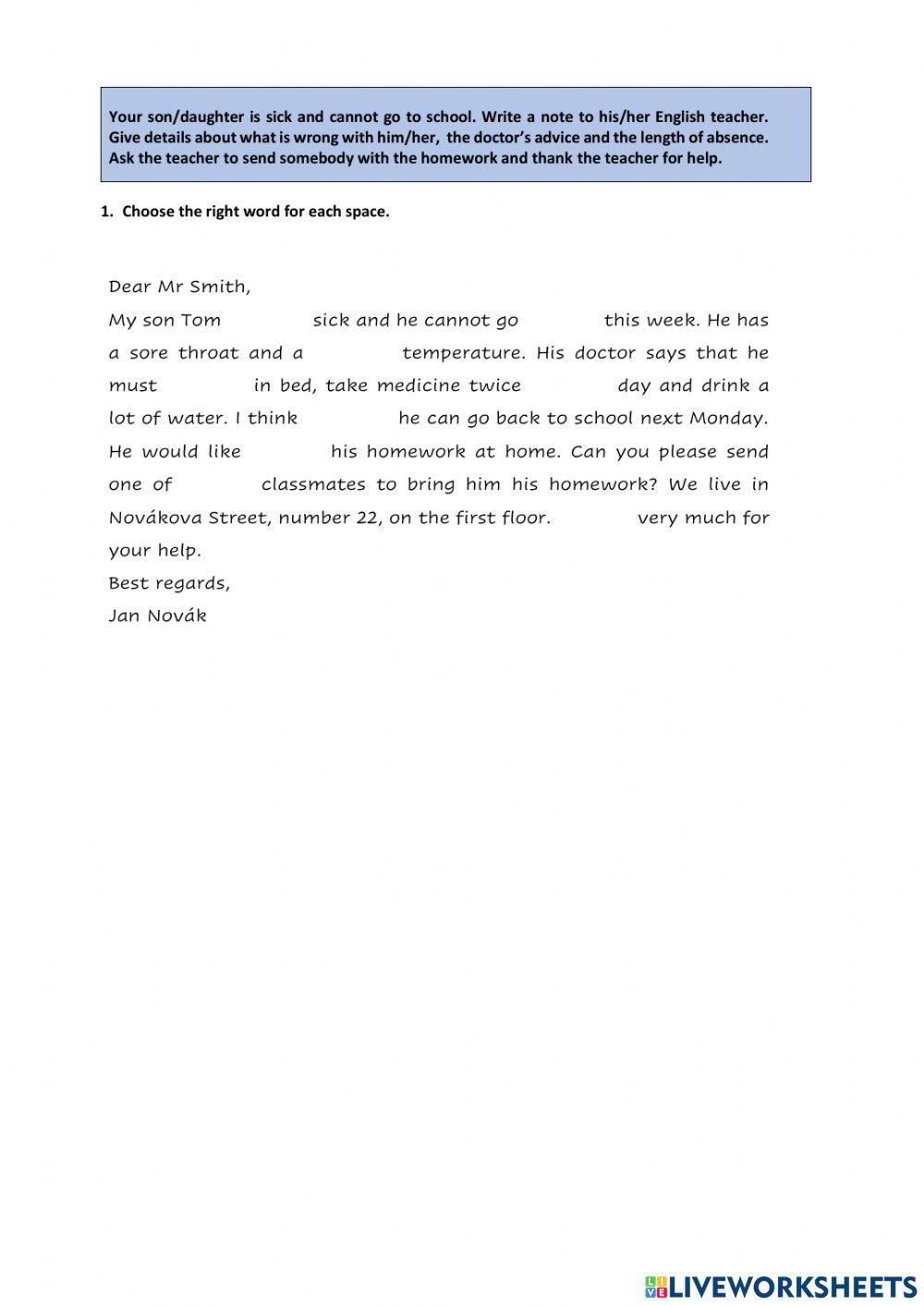 Note To The Teacher Model Writing 1 7 Worksheet Live Worksheets
